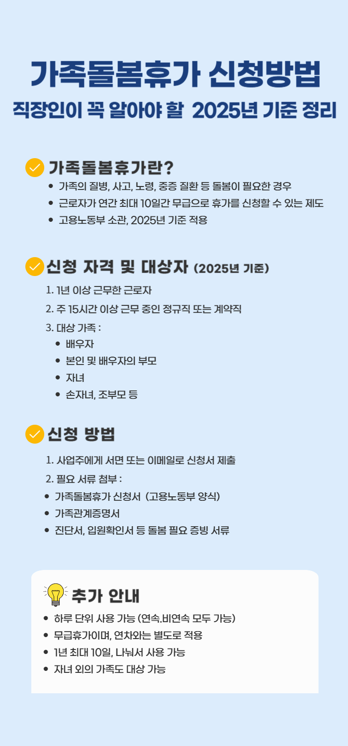 가족돌봄휴가 신청방법|직장인이 꼭 알아야 할 2025년 기준 정리